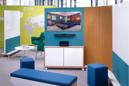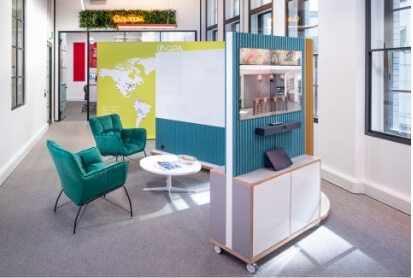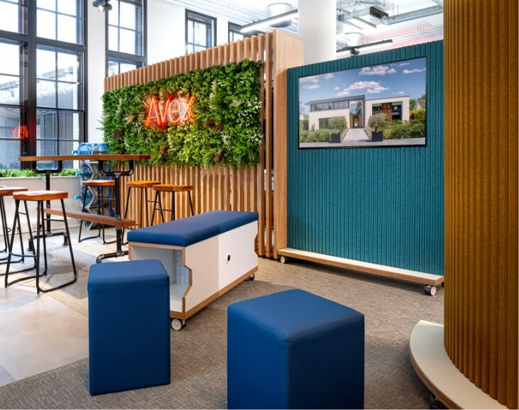 Working with AVEX, international experts in audiovisual innovation, ThinkingWall® multifunctional mobile wall solutions now include seamless AV integration, making it easy to connect both in-house and remote teams. Contact us to make an appointment to visit the AVEX showroom in London at 3 Moorgate Place to explore a small selection of products.