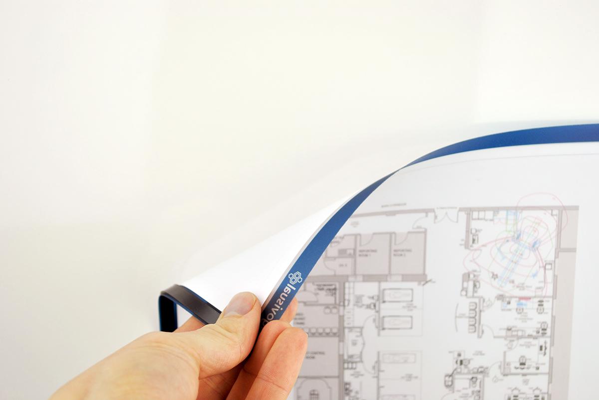 A4 and A3 magnetic document holders for use on ThinkingWall whiteboards, custom whiteboards and other magnetic receptive surfaces.
