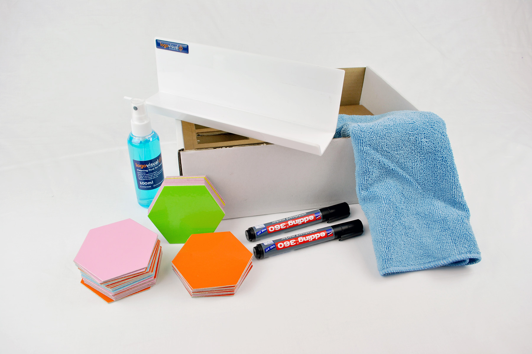 The hexagon shaped MagNotes are drywipe magnetic tiles for idea generation, note taking and making thoughts visible. The individual magnetic tiles allow ideas to be clustered on a whiteboard during planning or brain storming sessions. Once up on the whiteboard they can be easily moved around, structured and made sense of. Further information on visual thinking processes can be found here or see our other kits for more comprehensive solutions.