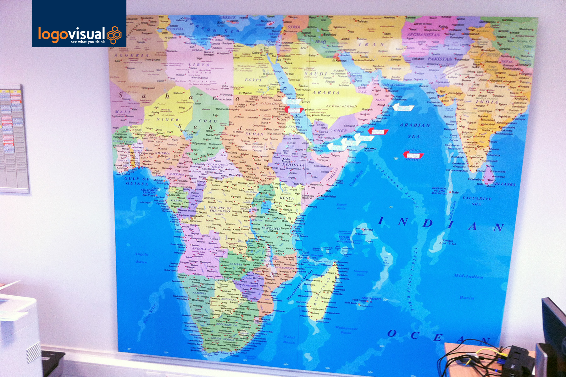 Magnetic drywipe maps offer a contemporary aesthetic solution to any office, and can consist of any design from existing map artwork or a defined version for a specific use.