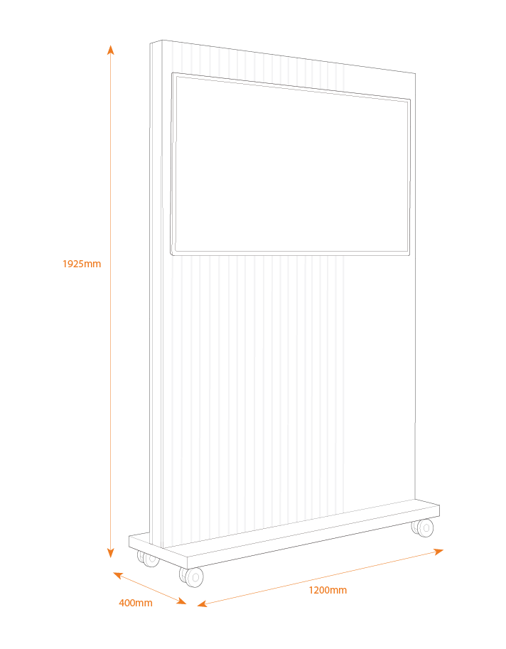 A mobile and freestanding unit which combines drywipe and magnetic writing surface with acoustic panels and integrated mounts for TV screens or AV displays. Available wired for mains power or with built in rechargeable battery.